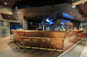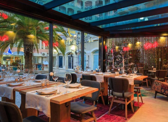 The space has a modern and bold decoration, a huge room with cozy corners, a large terrace, a conservatory and an exquisite cocktail bar.