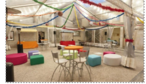 Espaço para eventos com atmosfera típica de Lisboa porque parece um bairro antigo. Tem espaço interior e exterior, em que todas as áreas apanham luz natural, pelo que pode receber eventos independentemente da estação do ano.